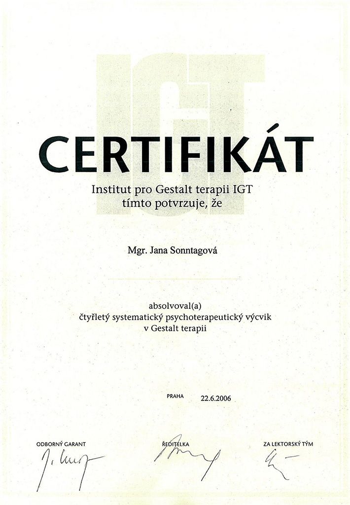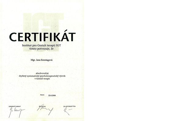 - 2001-2006 Institut pro Gestalt terapii, IGT Praha, komplexní psychoterapeutický výcvik